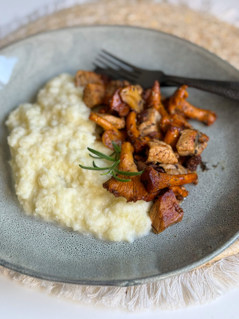 Kalivoda Timi receptjében a bárány telt ízét a gomba földes aromája és a kakukkfű friss illata teszi kerekké. A mellé készített, vajjal krémesített karalábépüré egy könnyed, finom, kissé édes köretként adja meg a teljes harmóniát. A karalábépüré remek alternatíva a krumplipüré helyett: könnyebb, szénhidrátszegényebb, mégis krémes és telt ízű, a bárányhússal pedig olyan tökéletesen egészítik ki egymás ízét, mintha kötelező párosítás lennének.