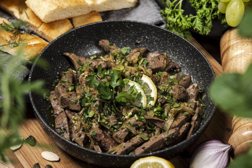 Ez a fogás igazi kulináris utazás a napsütötte Szardínia szigetéig. A báránymáj különleges, karakteres ízét a citrom frissessége és a méz finom édessége emeli ki, miközben az oregánó és a petrezselyem mediterrán hangulatot csempész az ételbe. A szaftos, enyhén karamellizált hagymával együtt pirítva a máj igazán harmonikus ízvilágot kap.