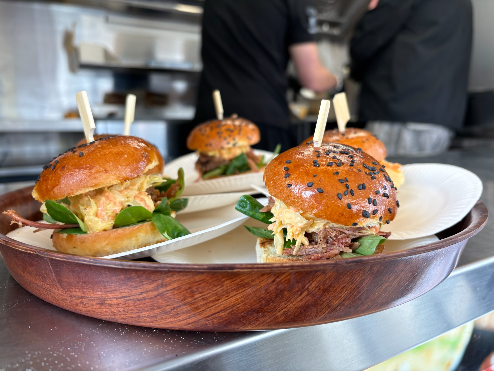 A nap során összesen 200 adag kóstolót készítettünk el és kínáltunk a látogatóknak. A választásunk egy tépett bárányhúsos hamburgerre esett, amely egy könnyen befogadható, ugyanakkor a bárányhús karakterét jól bemutató formában jelent meg. A street food jellegű tálalás lehetőséget adott arra, hogy a látogatók gyorsan és egyszerűen megismerjék ezt az alapanyagot.